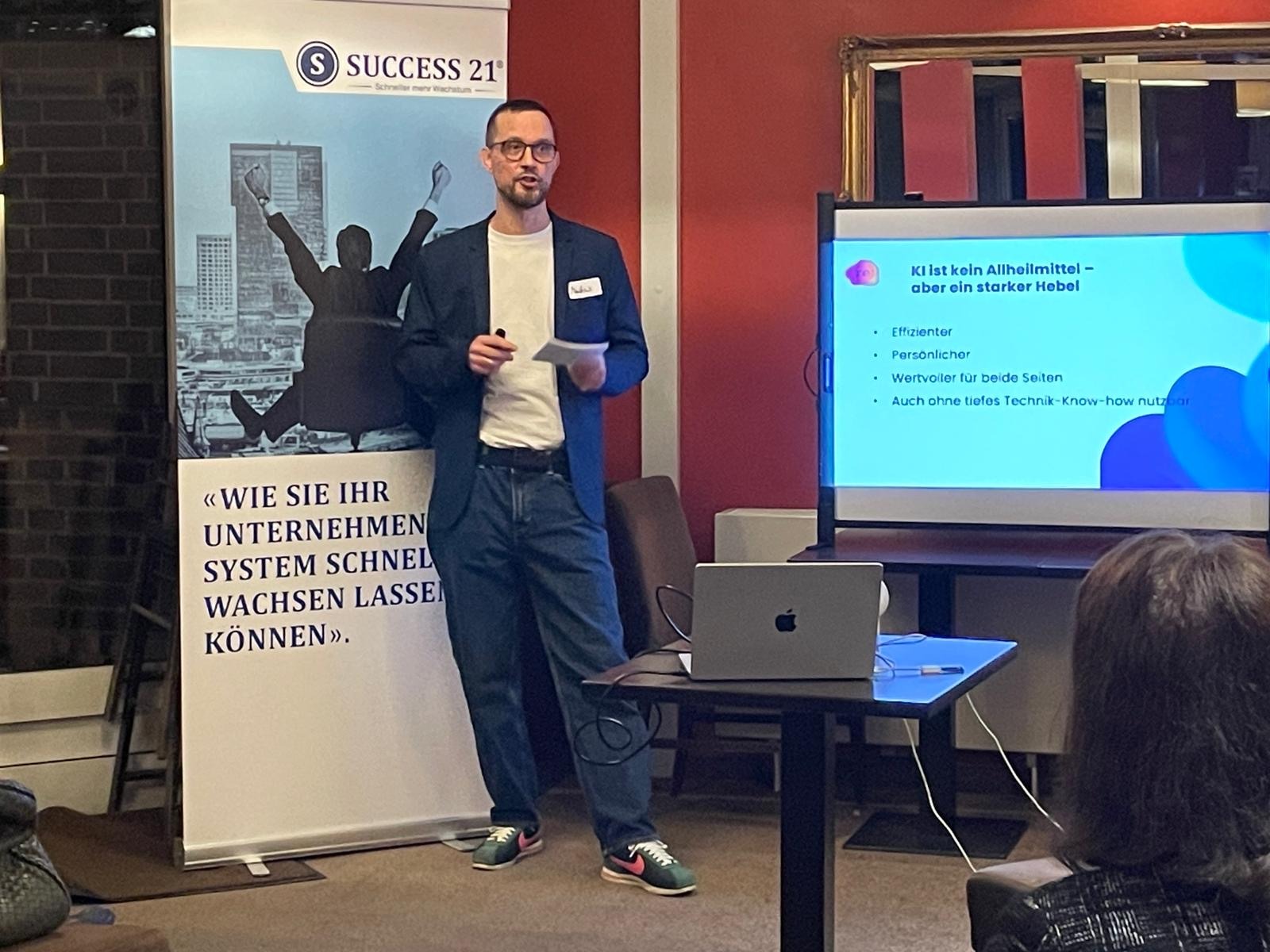 Letzte Woche durfte ich bei der Success21-Netzwerkveranstaltung in Berlin einen Impulsvortrag halten – zum Thema „Wie KI die Leadgenerierung auf ein neues Level hebt“. Die Reaktionen haben mir gezeigt: Viele Unternehmer:innen wissen, dass sie mit klassischer Leadgenerierung (Messen, Whitepaper, Kontaktformulare) Zeit und Chancen verschenken – aber sie trauen sich nicht, den ersten Schritt zu machen.